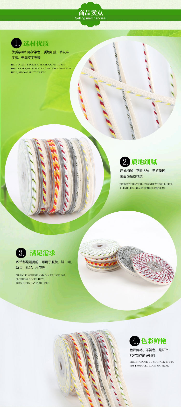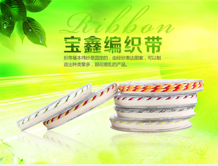 主營產(chǎn)品:提花織帶,韓國織帶,編織帶,仿尼龍織帶,緞帶/羅紋帶,子母織帶,熱轉(zhuǎn)印織帶,間色織帶